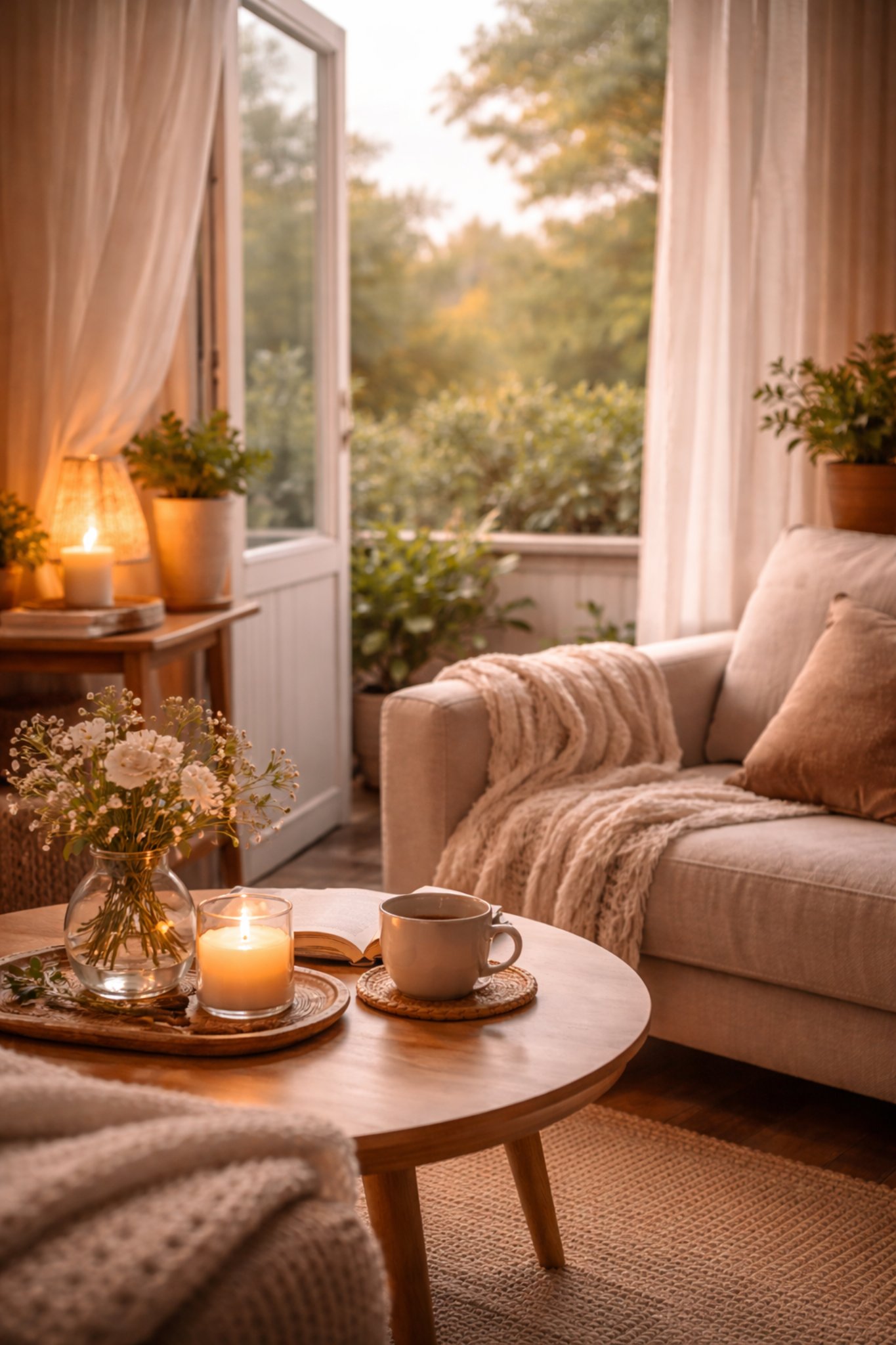 Ritual pagi atau malam juga dapat menjadi kesempatan untuk menghadirkan momen hening. Di pagi hari, membuka jendela dan menikmati suasana sebelum aktivitas dimulai dapat memberikan kesan awal yang lebih lembut. Di malam hari, meredupkan lampu dan duduk sejenak dapat menjadi penutup hari yang terasa lebih penuh perhatian.